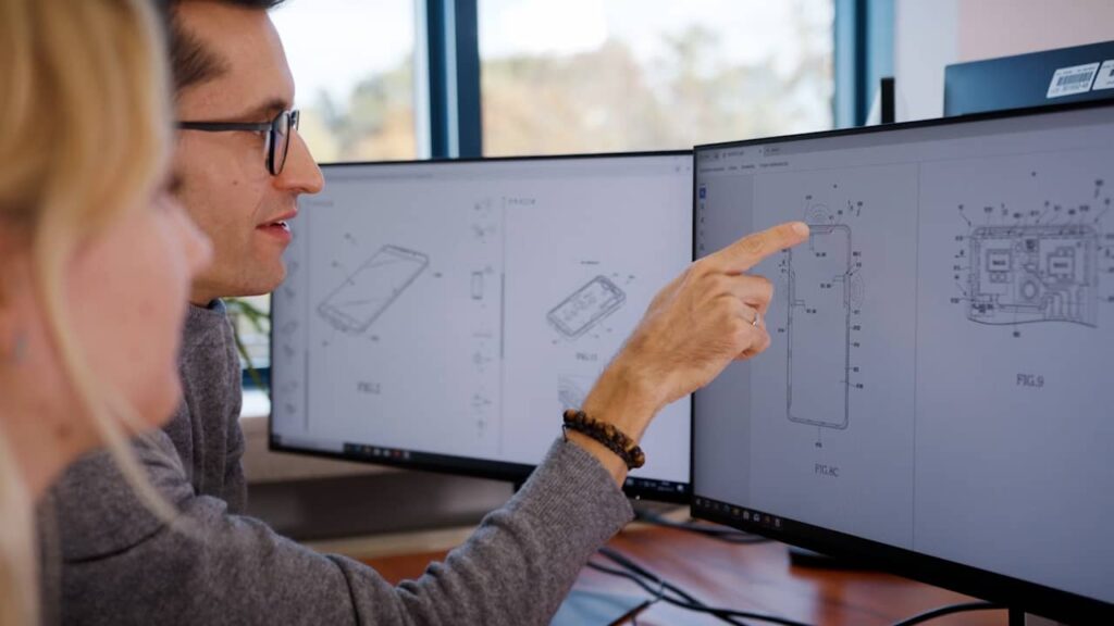Po zakończeniu zdjęć przystąpiliśmy do postprodukcji, która obejmowała montaż materiału. Zanim finalna wersja filmu trafiła do klienta, przygotowaliśmy roboczy montaż, który przedstawiliśmy do oceny. Klient miał możliwość zapoznania się z selekcją zdjęć oraz doborem ujęć, co pozwalało na wprowadzenie ewentualnych poprawek w zakresie kompozycji i dynamiki filmu. Współpraca na etapie postprodukcji była niezwykle owocna, ponieważ dzięki wymianie wytycznych udało się dopracować ostateczną wersję filmu, spełniającą w pełni oczekiwania klienta. Zawsze staramy się dbać o każdy szczegół – od selekcji ujęć po odpowiednią pracę z dźwiękiem i muzyką. Montaż w filmie rekrutacyjnym odgrywa ogromną rolę, ponieważ to on decyduje o tym, jak film będzie postrzegany przez odbiorców. Wprowadzenie subtelnych efektów graficznych, takich jak wyświetlanie numerów patentów czy znaków towarowych, miało na celu podkreślenie roli Urzędu Patentowego w życiu codziennym. Ten zabieg graficzny okazał się strzałem w dziesiątkę, ponieważ nie tylko wprowadzał elementy edukacyjne, ale także przyciągał uwagę widza, ukazując w prosty sposób, w jaki sposób przedmioty codziennego użytku są powiązane z pracą urzędników.